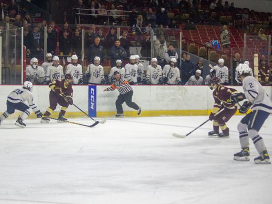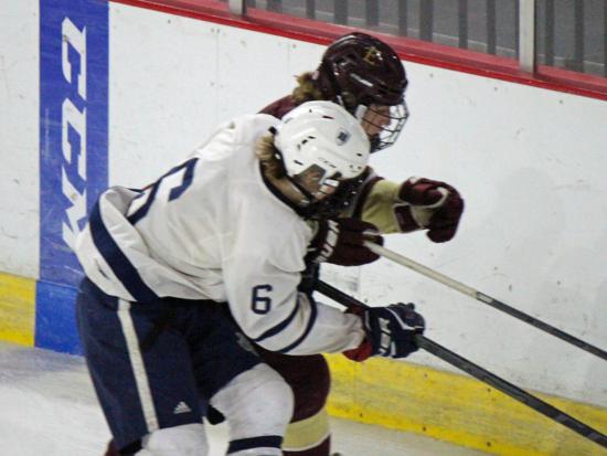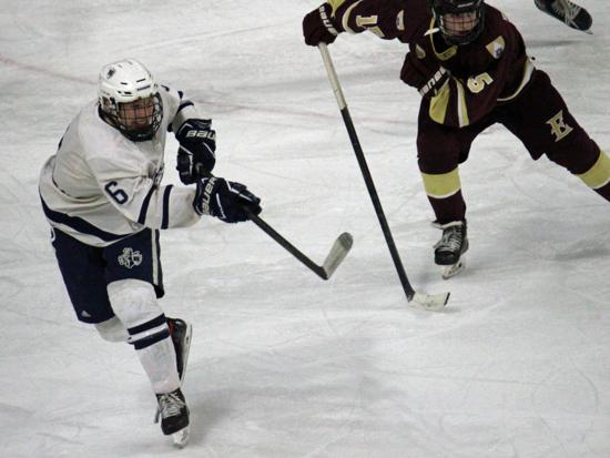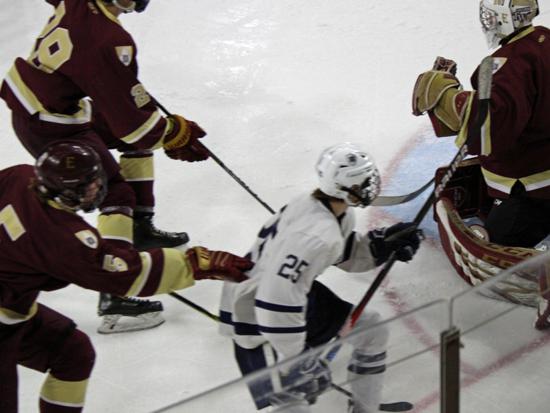 Hudson dominated the first six minutes of the second period, holding Edgewood to just one shot on goal. The Crusaders however, will still clogging up the defensive zone and limiting Hudson's chances.