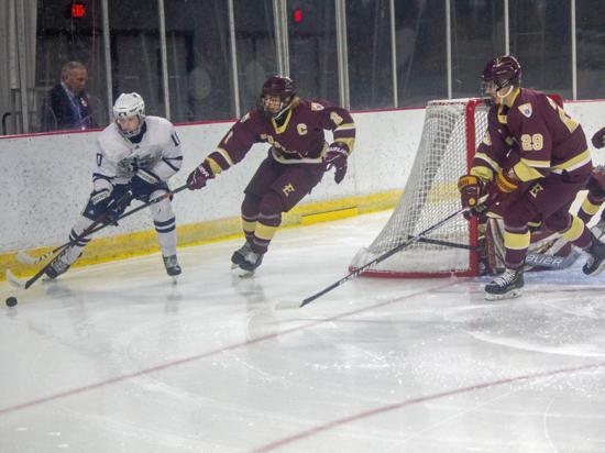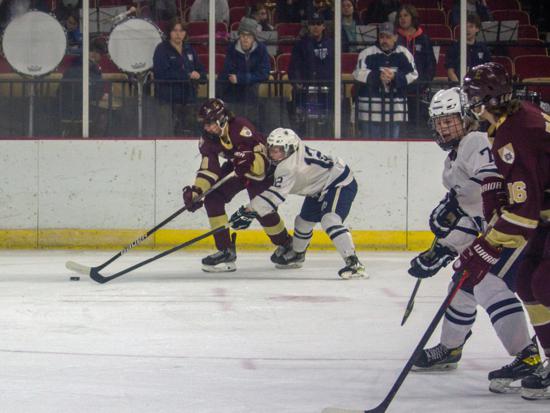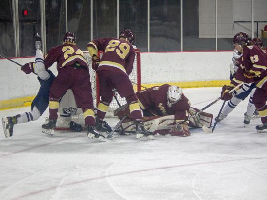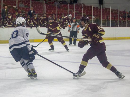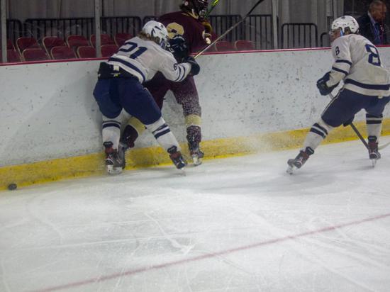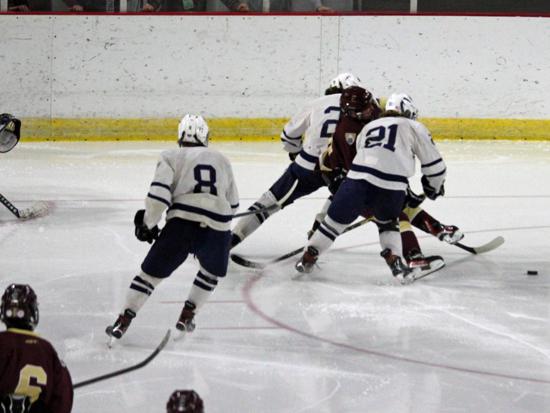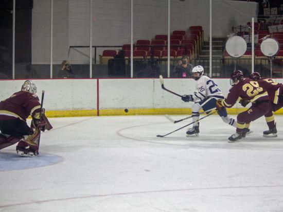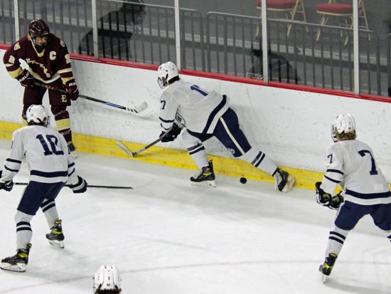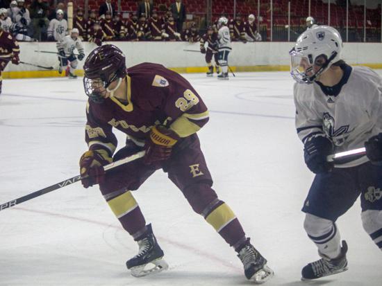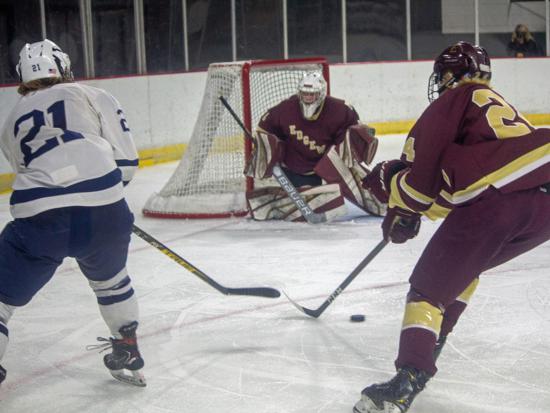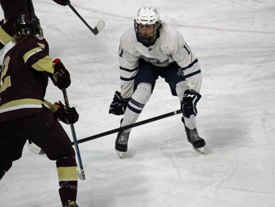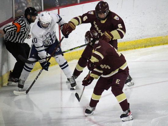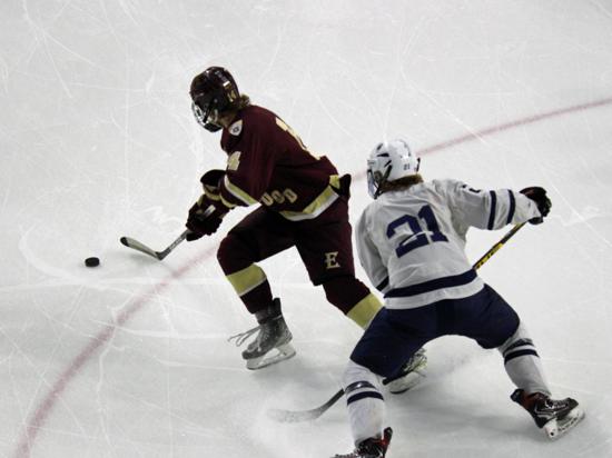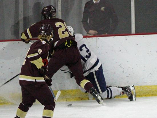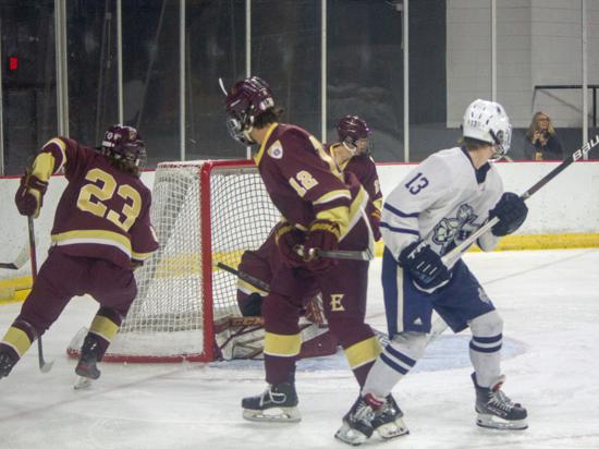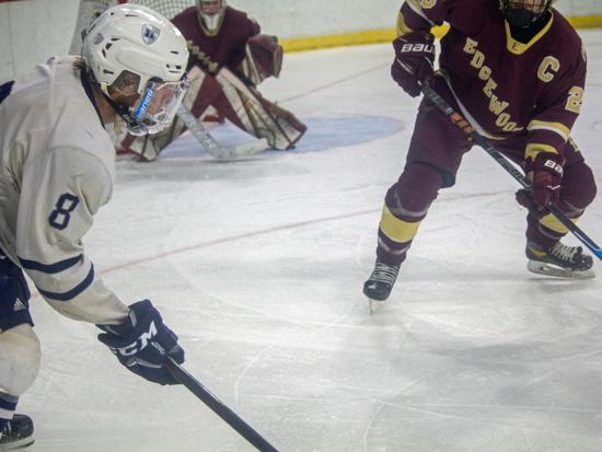 Hudson further clamped down defensively at that point and while Edgewood had two power play chances in the period (briefly overlapping in a 5-on-3), they were only able to put two shots on goal in the frame.