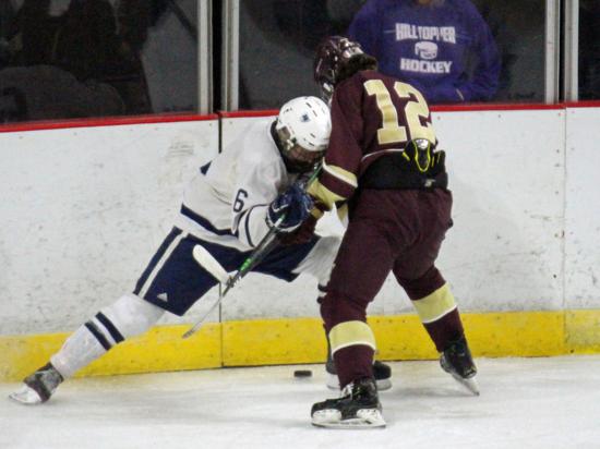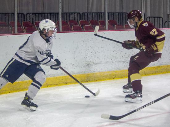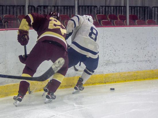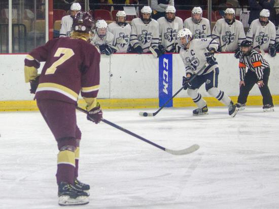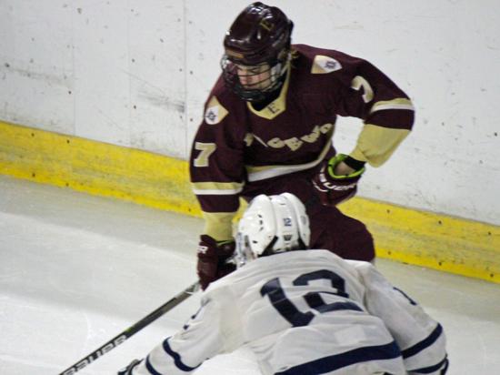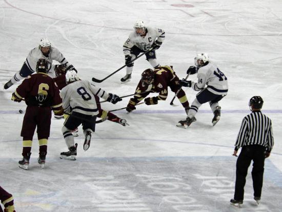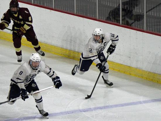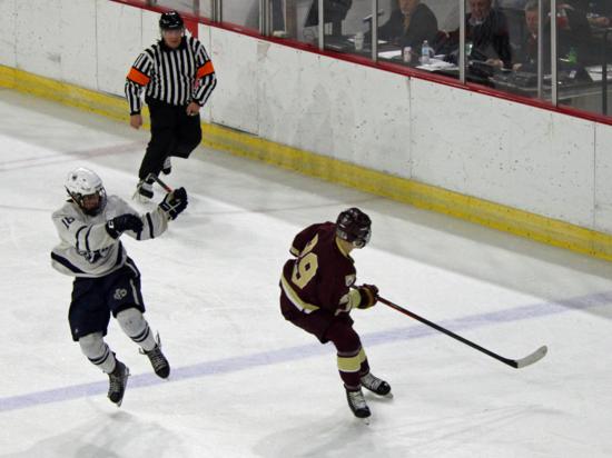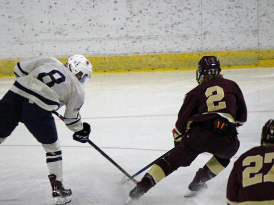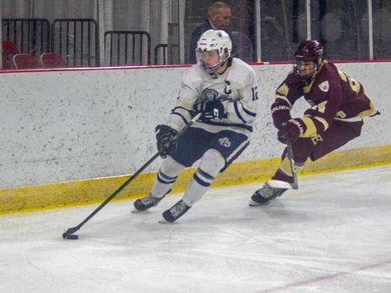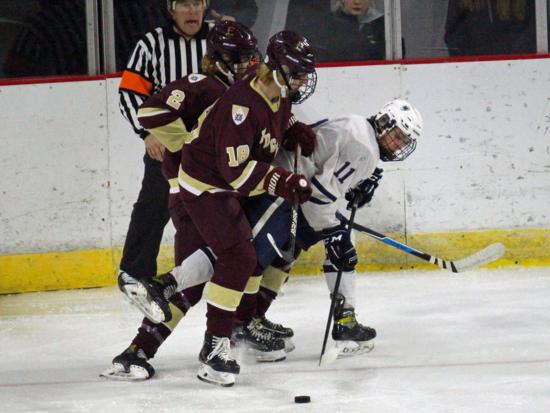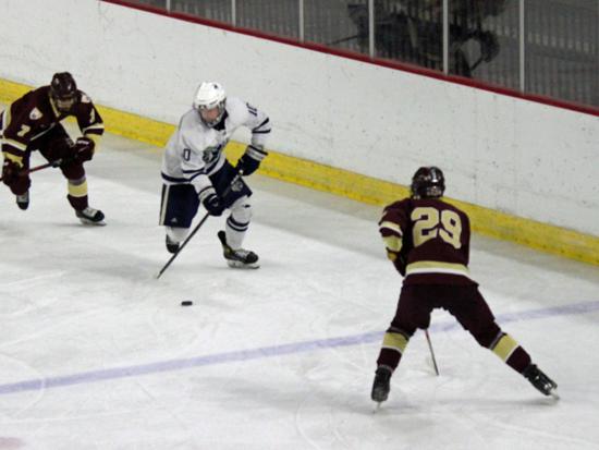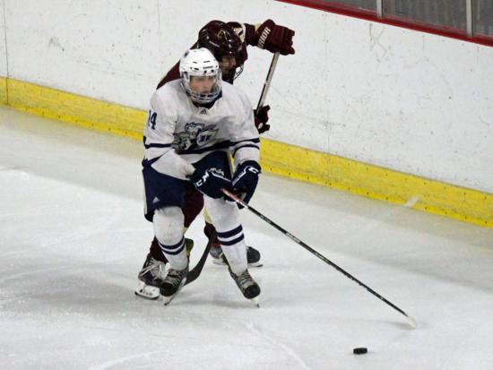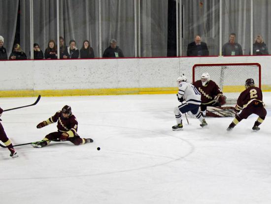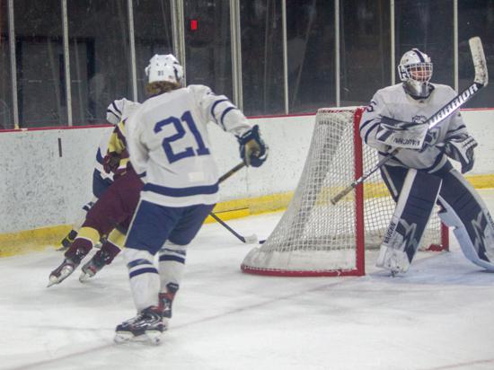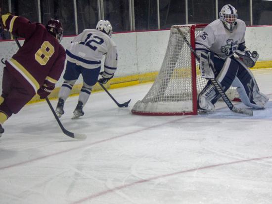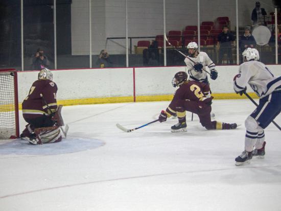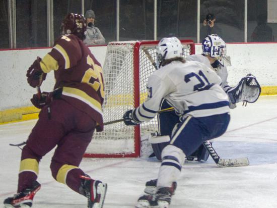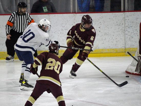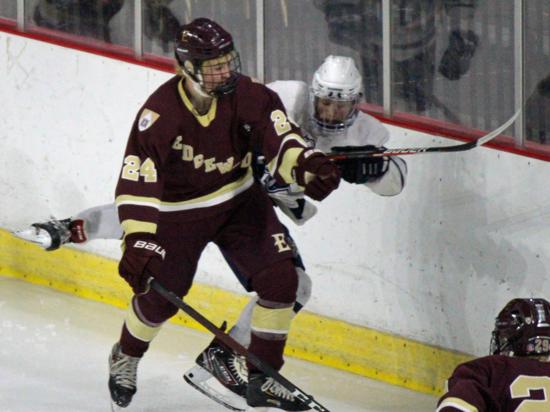 It was the Raiders who got on the board first however. With 20 seconds left on the clock, Matthew Mauer toe dragged around an Edgewood defenseman and drove wide to White's glove side, then he passed across the slot and back to Zach Kochendorfer who had slipped past his man and put the one-timer into the awaiting cage to give Hudson the 1-0 lead going into the intermission.
