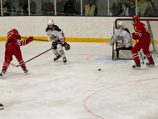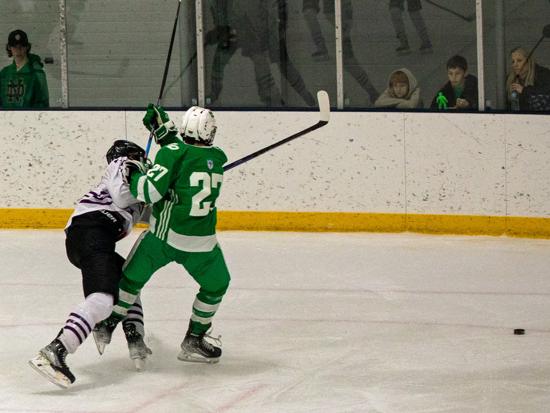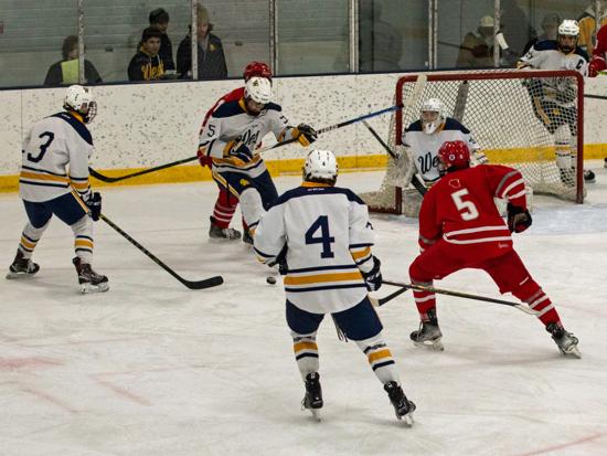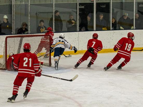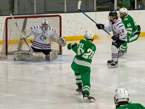 Despite that, it was Eau Claire who got on the board first with 3:17 left in the first period. Dylan Byrne fired a shot on net and it was turned aside by Triton goalie Anton Widas, but the rebound sat in the crease for what felt like forever before it was poked in by Nolan Ottum and the Old Abes went into the first intermission with the lead.