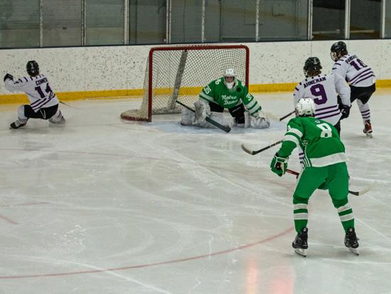 They took the lead five minutes later, when Ian Noble found himself with space on the blocker-side faceoff dot and scored five-hole. Sam Kappell made it 3-1 with another low wrister through traffic. Joe Gerbitz scored the final goal of the period with about two minutes left in the frame to give Notre Dame a strong 4-1 lead.