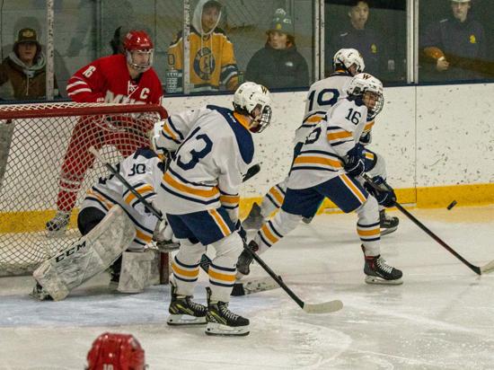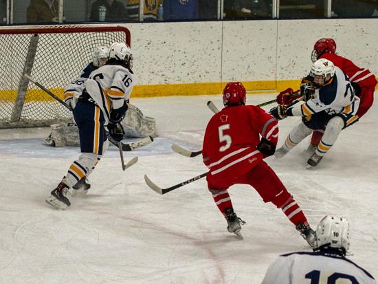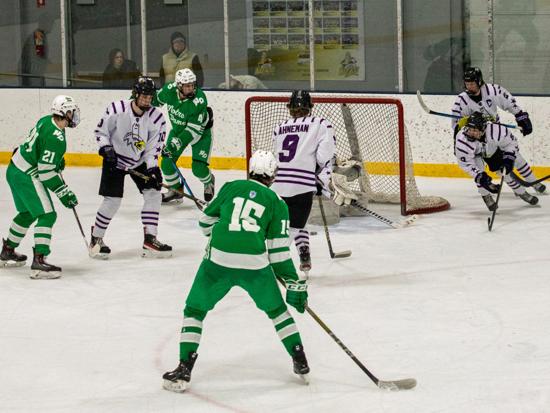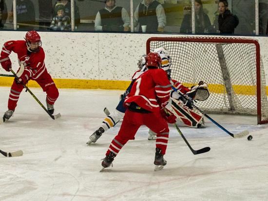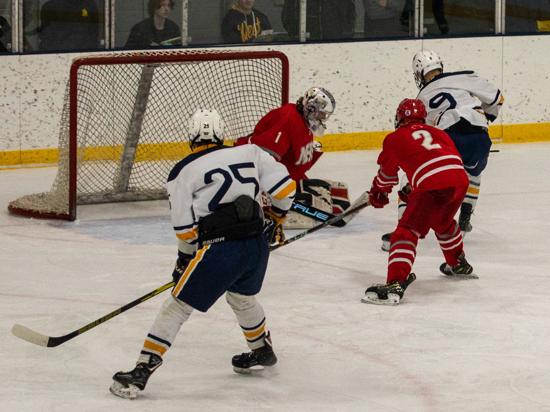 In the second period however, the Tritons would rack up four goals on a 14-4 shot advantage. On the first Wyatt Herres and Kade McCarron sucked the Abes defense down below the goal line and hit Keegan McCarron out front for a wide open chance he didn't miss.