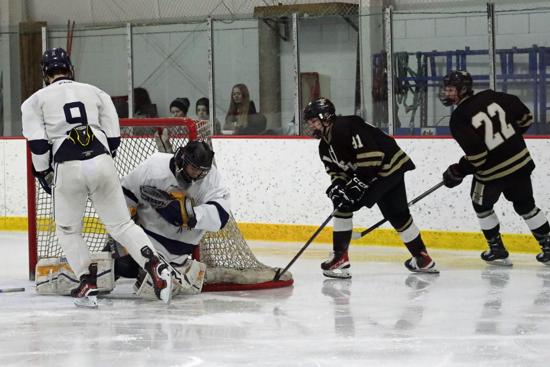 The Eagles of Northland Pines scored 5 unanswered goals through the first two periods to take a 5-0 lead into the third before Medford got on the board, outshooting the Raiders 33-23 in the process.
