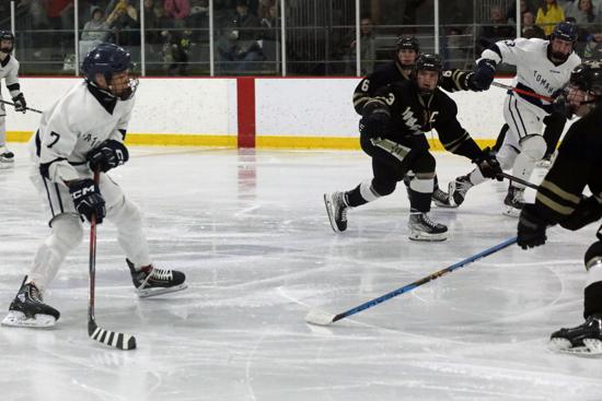 The first period saw Tomahawk's leading goal scorer and first-team all-conference forward, Jonah Dickens take a five-minute major for checking from behind. Between the major and 10-minute misconduct, the Hatchets were without Dickens for nearly the entire first period.