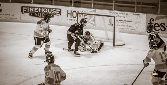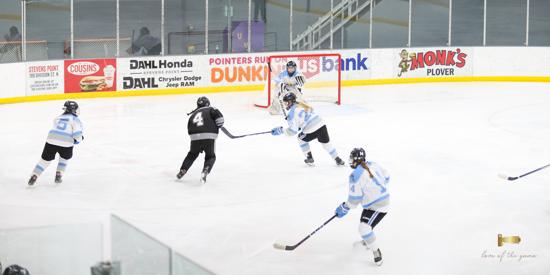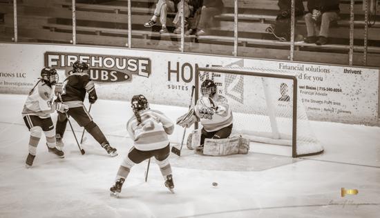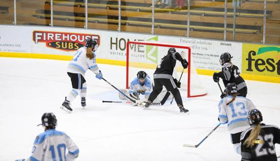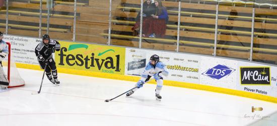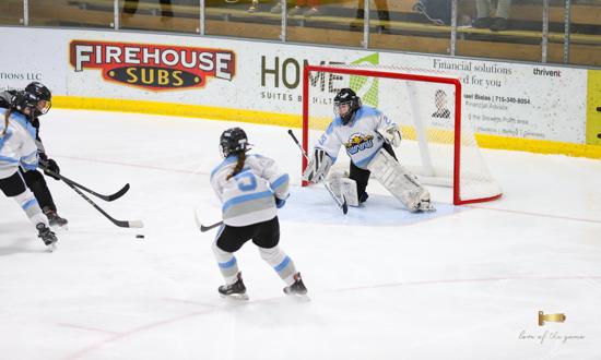 When the puck dropped at KB Willett Arena, the Stars looked hungry as they took on the Wisconsin Valley Union. When Gabby Thomsen accelerated through the neutral zone and broke in free on Union goalie Issie Wojcik, grabbing an early lead looked promising. However, the sophomore from Marshfield stopped Thomsen. A Union penalty at 12:22 put the Stars on the powerplay. Wojcik denied a pretty cross-ice one-timer off the stick of Thomsen to keep the game scoreless.
