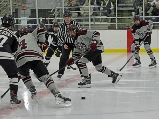Late in the first period, Antigo had a golden opportunity to even the game when a pass came across the slot to Justus Keesling who was parked at the back door. His one-timer missed the net and the first period ended with Shawano/Bonduel up by one.