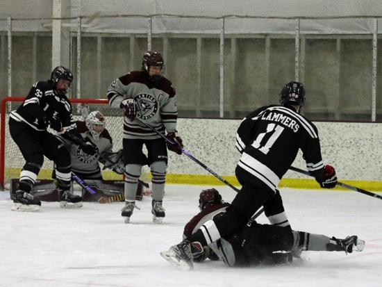 The Hawks out-shot the Robins 20-4 in the first period, with Shawano goalie Tyson Lyons stopping all the shots sent his way.