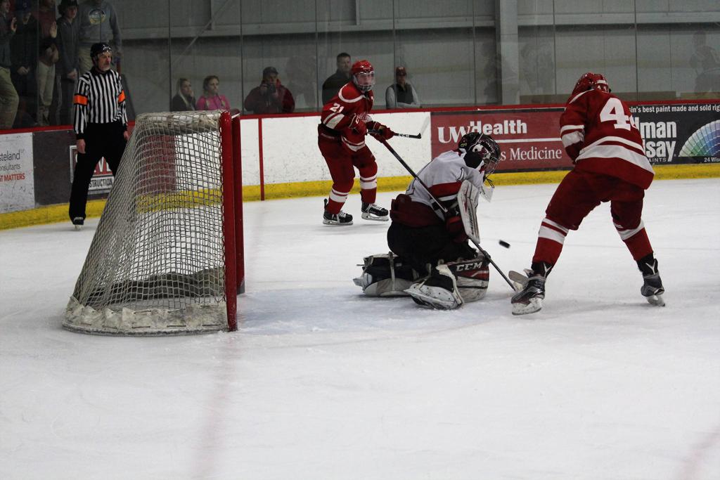 Late period goals are becoming a way of life for Sun Prairie this post-season. They had a goal with 1:50 left in the first period of their game with Madison Memorial and two in this game.