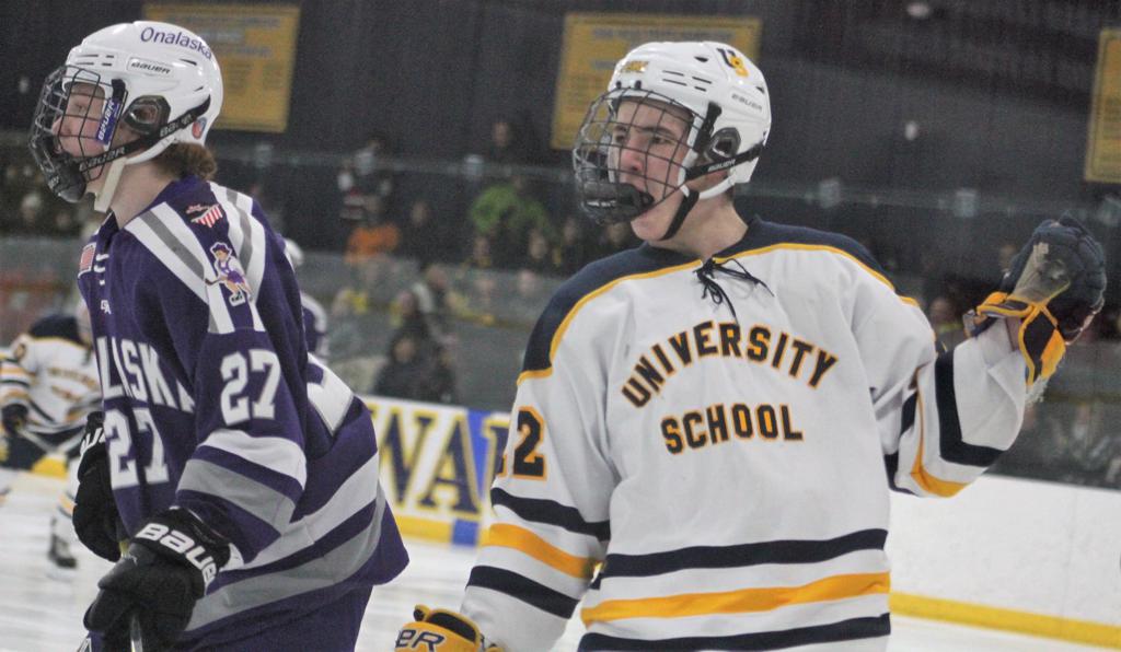 The game on Friday, February 8th at University School featured two of the top-ten boys’ hockey teams in Wisconsin, the University School Wildcats, ranked second in the state, and the seventh-ranked Onalaska/LaCrosse Hilltoppers. Each year these two cross-state teams compete in a late season contest. This year, the rivalry was heightened; both teams entered the game with 20-win seasons. The Wildcats began the game at 20-2 and the Hilltoppers arrived in Milwaukee with a 21-2 record. In the non-conference contest that ensued, the Wildcats demonstrated their hockey skills by defeating their guests, 6-1.