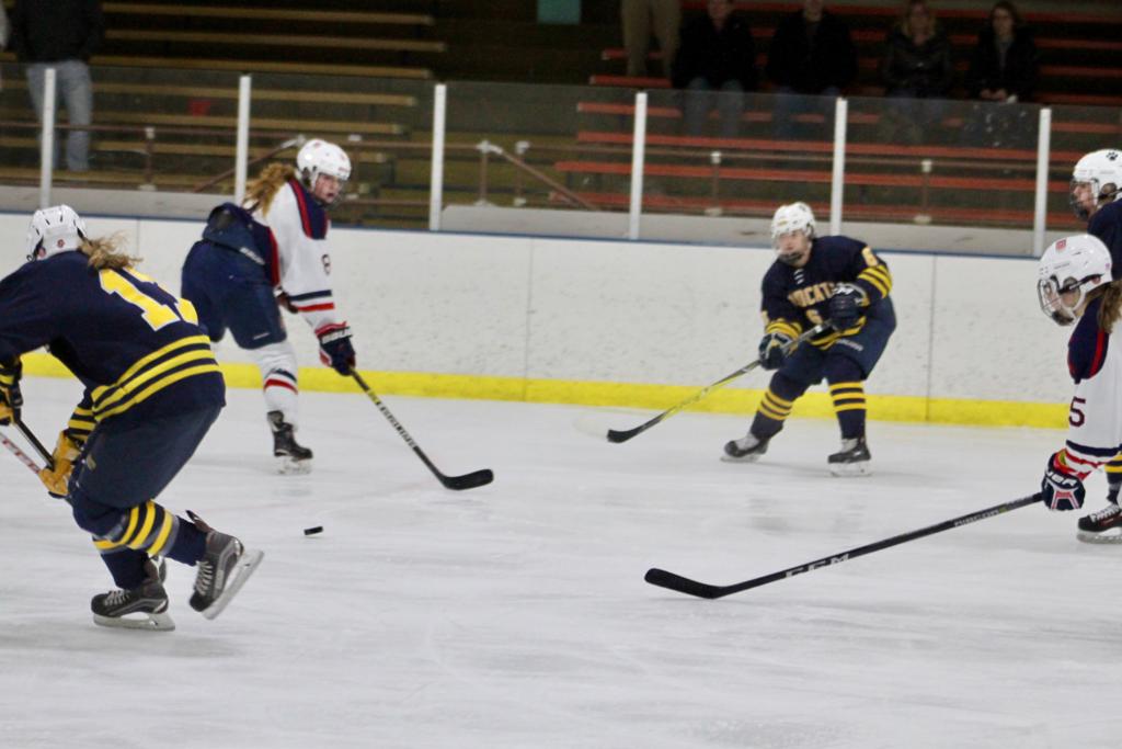 At 13:30 Schauf scored her own goal. Jablonski knocked the puck to the sideboards in the Wildcats zone. Annika Horman rushed to it, turned and whipped a pass to Schauf who was in the low slot. Schauf went to a knee to shoot but made the shot good.