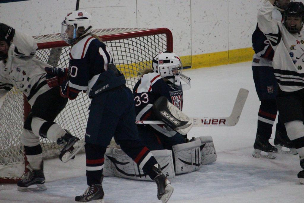 The score remained unchanged for most of the period until Kourtney Koster pushed in a puck that seemed to be covered by Okon. After a brief review with the goal judge, Fox Cities had a 3-1 lead.
