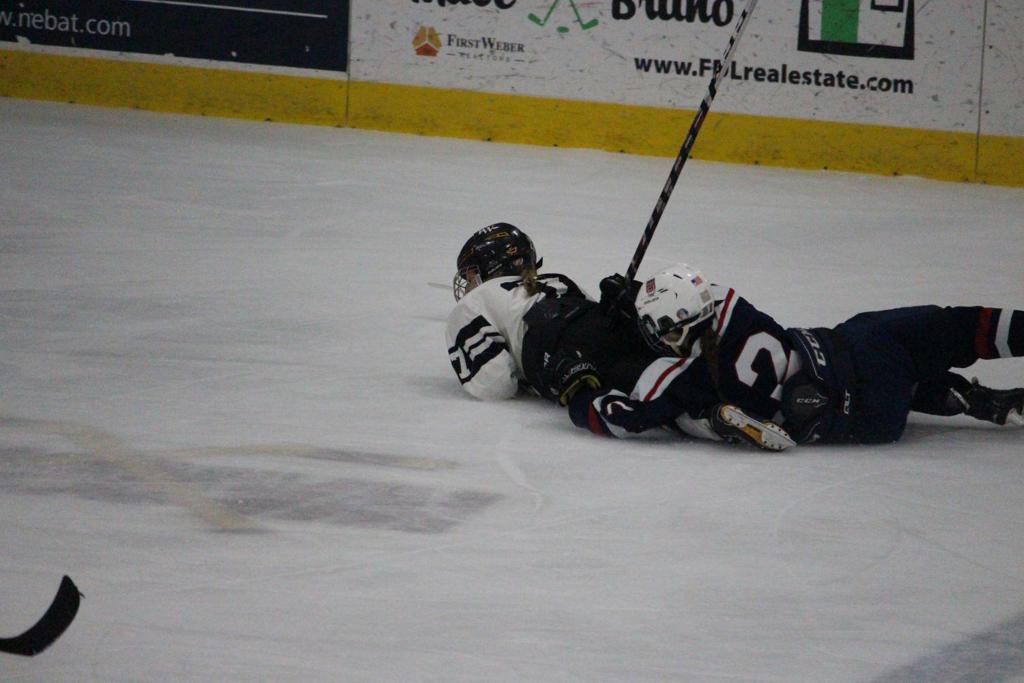 A minute later, Verstegen got her second goal (and the team's) with her shot from the left point that bounced off the goalie stick and ended up in the net to cut the margin to 3-2. Eve Lundin and Morgan Brown were credited with assists.